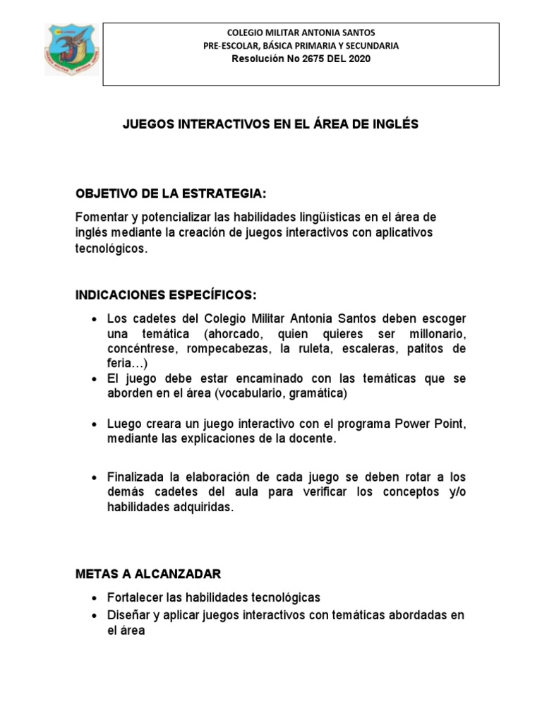 Juegos De Ingles Secundaria - Sigue las instrucciones de la parte de abajo y a disfrutar jugando.
